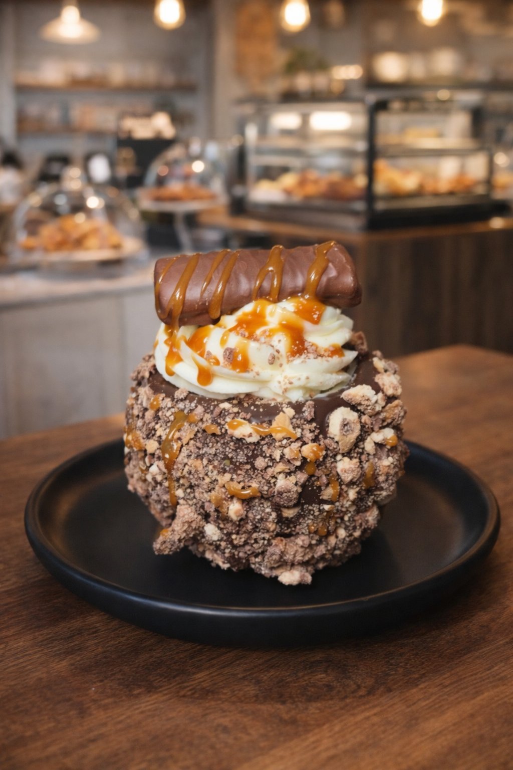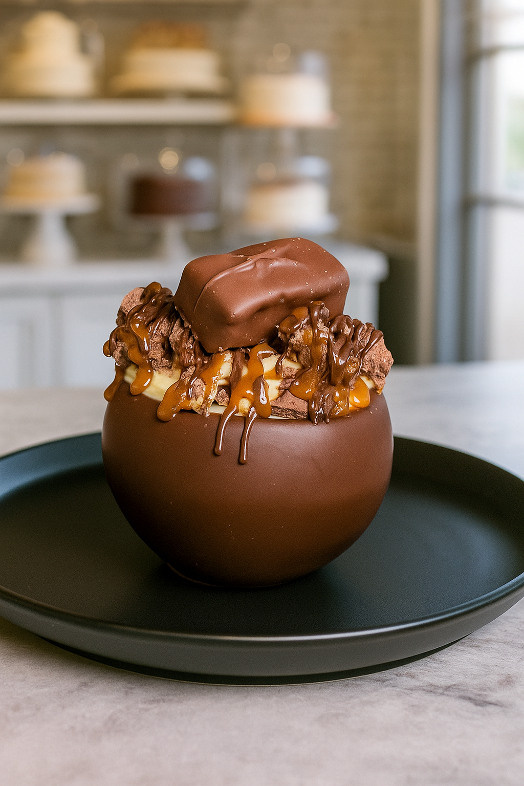 Indulge in our Snickers Cheesecake dipped in milk chocolate and filled with no-bake cheesecake with real Snickers pieces. Topped with Snickers crumbles, a mini Snickers bar, and drizzled with caramel and chocolate for the ultimate treat.